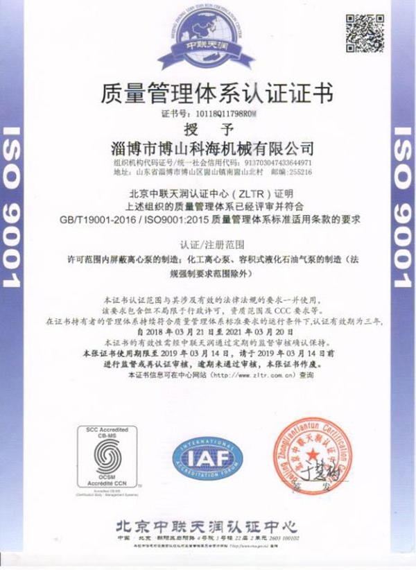 ISO9001质量认证体系认证·多年专注于耐酸泵化工泵生产制造